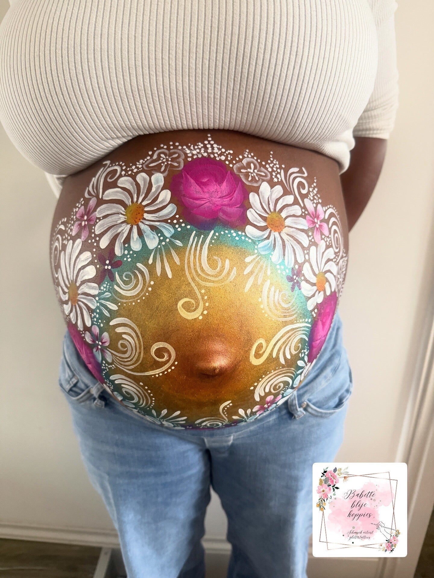 Bent u in blijde verwachting en lijkt het u leuk om uw buik te laten beschilderen? Of wilt u iemand verrassen met een unieke en liefdevolle ervaring? Dan bent u bij Babette Blije Koppies aan het juiste adres! Een bellypaint is een echt verwenmoment voor aanstaande moeders. Terwijl uw buik wordt omgetoverd tot een prachtig kunstwerk, reageert uw kindje vaak op het zachte gekriebel van de penseel, een bijzonder en intiem moment om nooit te vergeten.